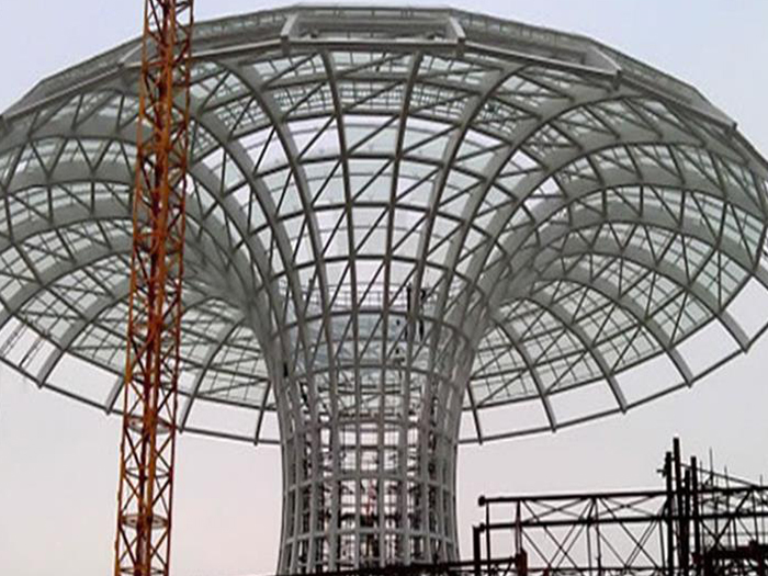 二、球形网架结构因其结构新颖,受力合理,自重轻、用钢量低等优点。如大型体育场馆球形渝中螺栓球网架、公共场馆球形网架、电厂渝中螺栓球网架、水泥工业球形网架、仓储物流球形网架、渝中干煤棚工业球形网架、渝中收费站渝中加油站球形网架、展览中心、影剧院、商场、航站楼、候车厅、工厂渝中车间、仓库、电视塔等球形螺栓球节点网架。国内球形网架结构主要分为:渝中焊接球节点网架及螺栓球节点网架两种。螺栓球节点网架其构件工厂内加工量较大,现场安装便捷,适用于现场工期紧,渝中施工条件、用电量受制约,网架形状复杂、渝中杆件定位困难的异形结构。螺栓球节点球形网架系统基本由渝中杆件、螺栓球、支撑支座等组成。按照节点形式可分为交叉渝中桁架体系、四角锥体系、三角锥体系等。支撑方式多为固定支座支撑。对于大面积、大跨度及有特殊受力或伸缩要求的网架结构可采用橡胶支座、滑移支座、球铰支座等支撑形式,以满足结构自身的受力稳定、均衡,便于内力释放等设计要求。